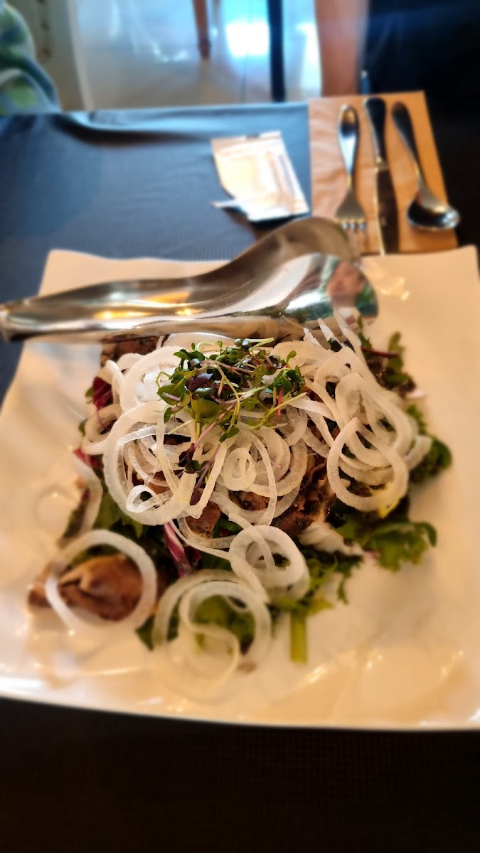One of the restaurant's signature dishes is the 게바위파스타, a flavorful pasta dish that perfectly balances rich textures and vibrant flavors. If you're in the mood for something light yet satisfying, the 차돌박이 샐러드 (beef brisket salad) offers a refreshing take on Italian cuisine with a Korean twist, combining tender beef and crisp vegetables. For those who prefer a more indulgent meal, the 한우채끝등심스테이크 (Korean Hanwoo sirloin steak) is an absolute must-try. Cooked to perfection, this steak is juicy, tender, and packed with flavor, giving you a taste of the finest beef South Korea has to offer.